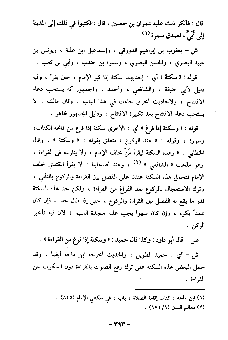 (1) ابن ماجه: كتاب إقامة الصلاة، باب: في سكتتي الإمام (845) .