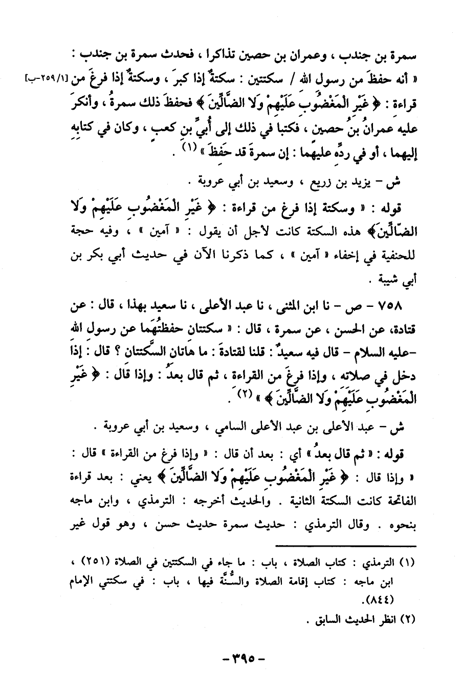 - عليه السلام- قال فيه سعيد: قلنا لقتادةَ: ما هاتانِ السكتتان؟ قال: إذاَ