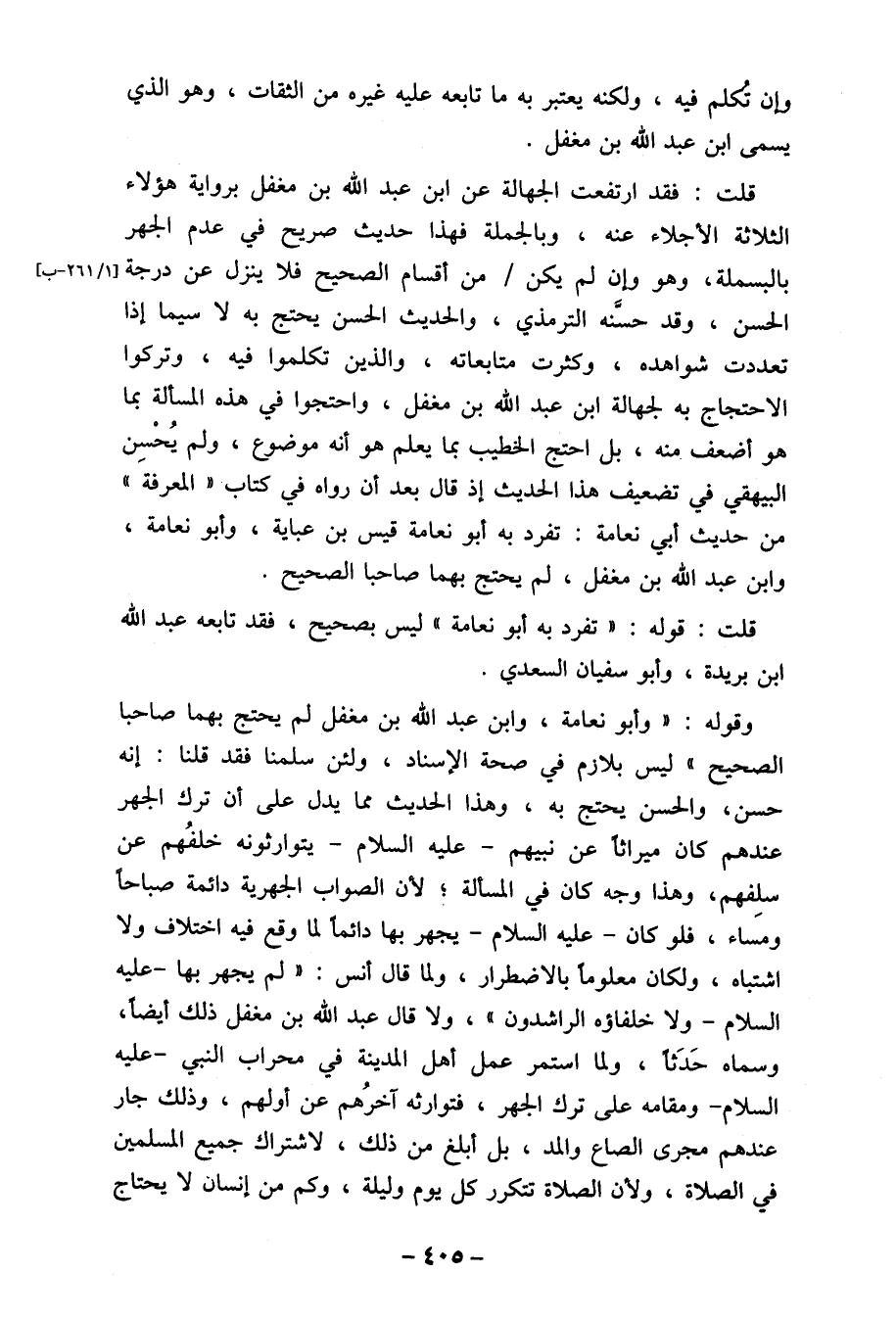 السلام- ولا خلفاؤه الراشدون "، ولا قال عبد الله بن مغفل ذلك أيضا،ً
