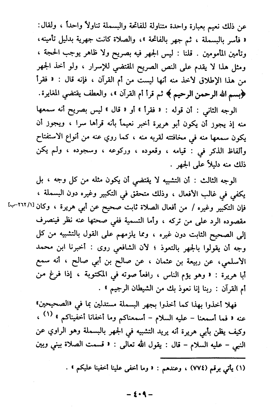 عن ذلك نعيم بعبارة واحدة متناولة للفاتحة والبسملة تناولا واحدا، ولقال: