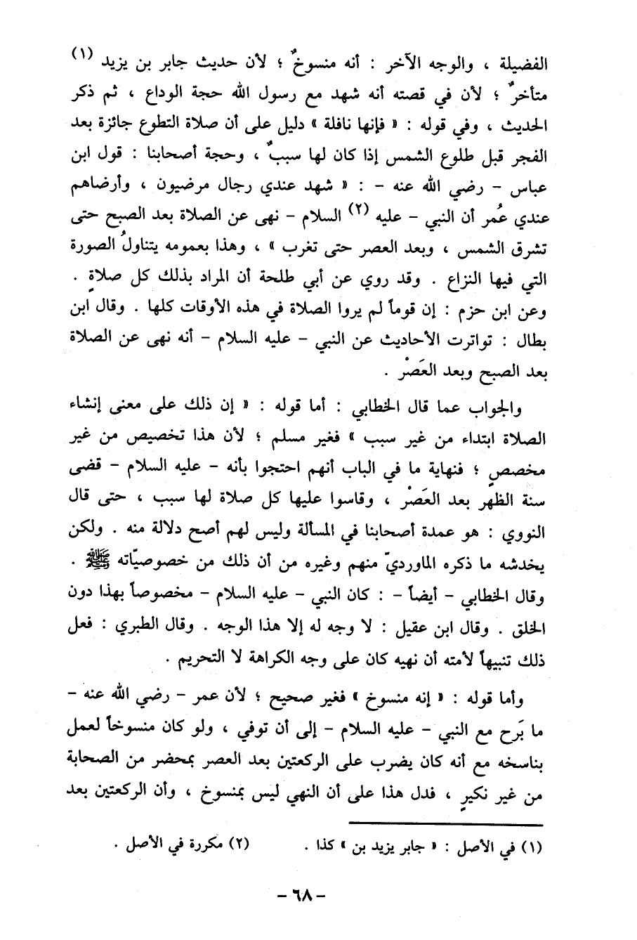 ما بَرح مع النبي- عليه السلام- إلى أن توفي، ولو كان منسوخا لعمل بناسخه مع أنه كان يضرب على الركعتين بعد العصر بمحضر من الصحابة من غير نكيرِ، فدل هذا على أن النهي ليس بمنسوخ، وأن الركعتين بعد