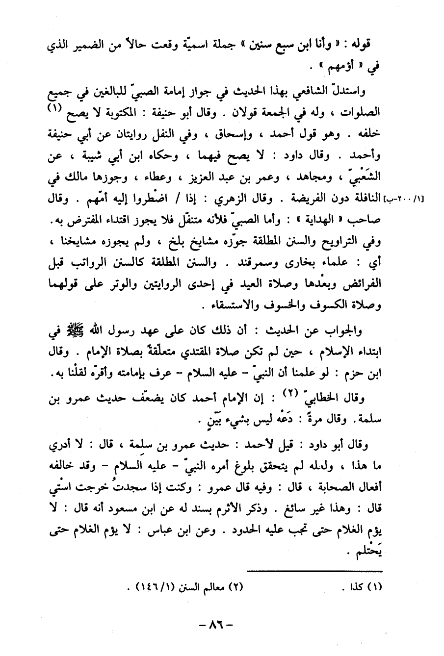 واستدل الشافعي بهذا الحديث في جوار إمامة الصبي للبالغين في جميع