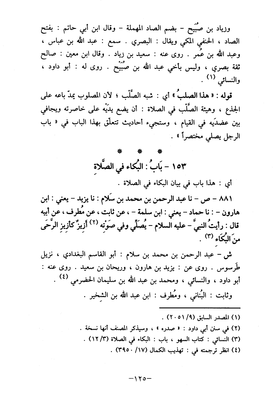 (3) النسائي: كتاب السهو، باب: البكاء في الصلاة (3/ 12) . (4) انظر ترجمته في: تهذيب الكمال (17/ 3950) .