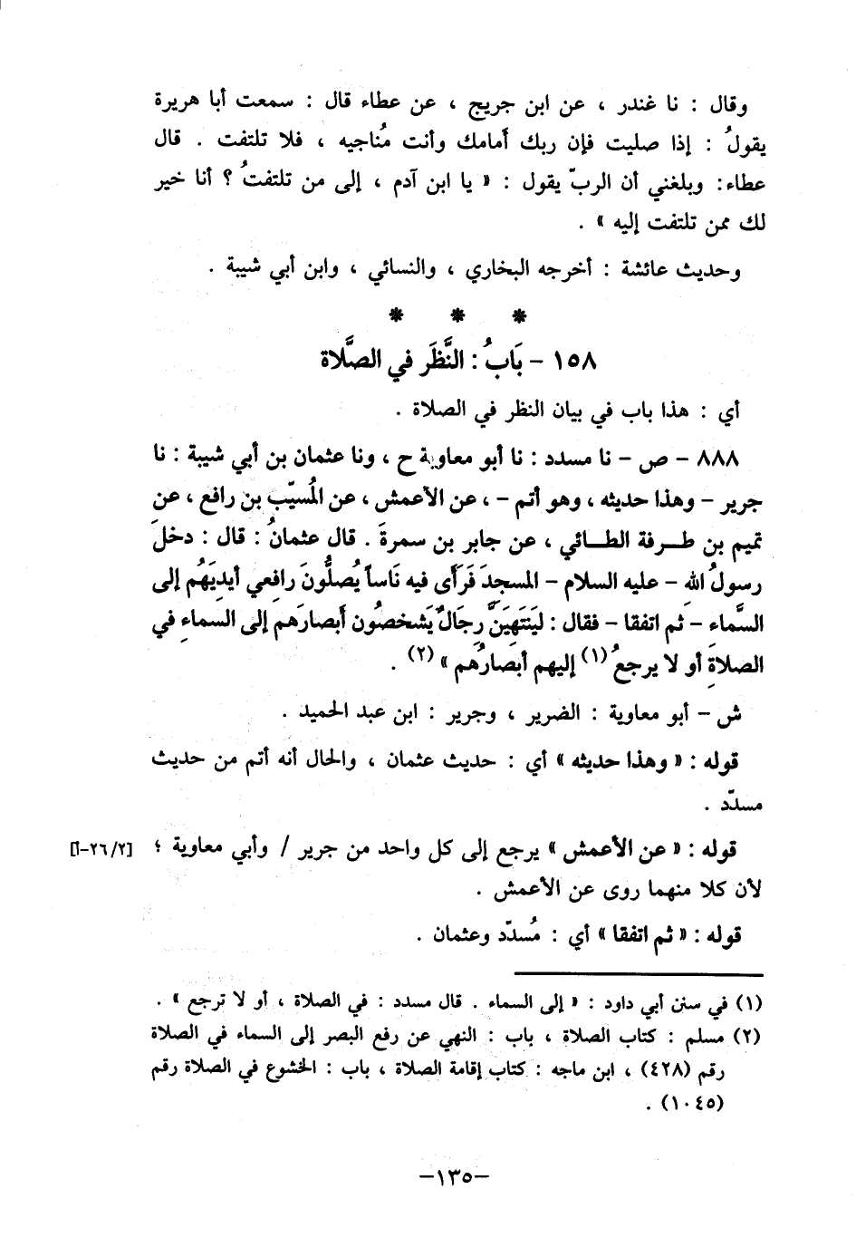(2) مسلم: كتاب الصلاة، باب: النهي عن رفع البصر إلى السماء في الصلاة رقم4 له 42) ، ابن ماجه: كتاب أقامة الصلاة، باب: الخشوع في الصلاة رقم (1045)