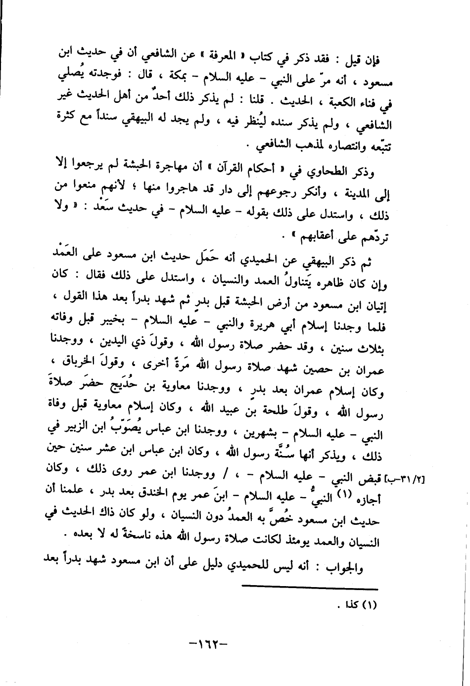 ثم ذكر البيهقي عن الحميدي أنه حَمَل حديث ابن مسعود على العَمْد