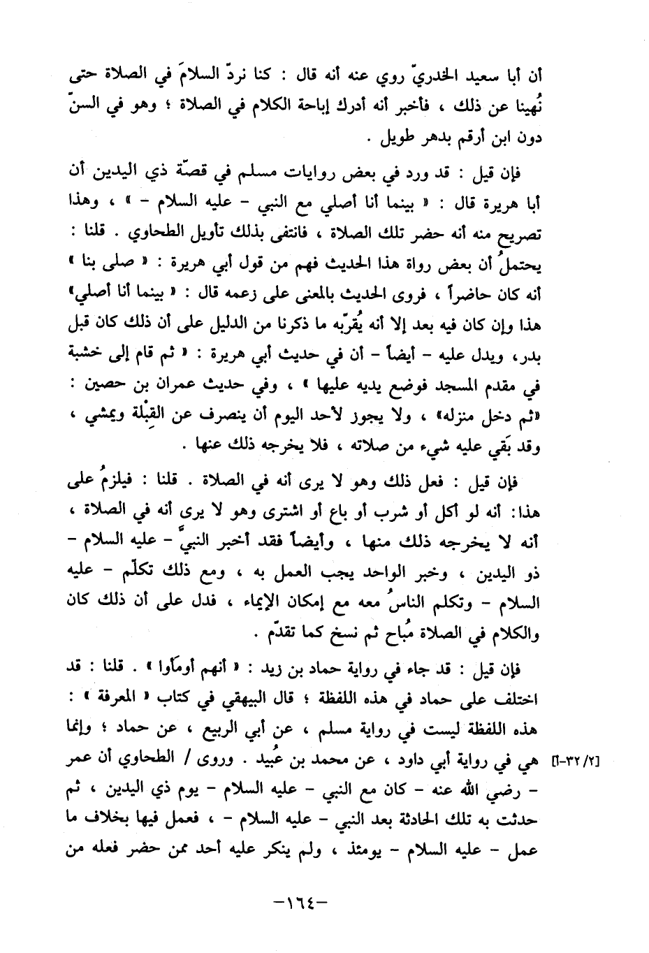 فإن قيل: قد جاء في رواية حماد بن زيد: "أنهم أومأوا". قلنا: قد اختلف على حماد في هذه اللفظة؛ قال البيهقي في كتاب (المعرفة) : هذه اللفظة ليست في رواية مسلم، عن أبي الربيع، عن حماد؛ وإنما هي في رواية أبي داود، عن محمد بن عُبيد. وروى/ الطحاوي أن عمر - رضي الله عنه- كان مع النبي- عليه السلام- يوم ذي اليدين، ثم حدثت به تلك الحادثة بعد النبي- عليه السلام-، فعمل فيها بخلاف ما عمل- عليه السلام- يومئذ، ولم ينكر عليه أحد ممن حضر فعله من