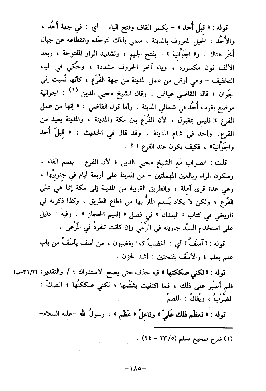 الفرع، وأحد في شام المدينة، وقد قال في الحديث: " قِبلَ أُحد والجوانية"، فكيف يكون عند الفرع"؟.