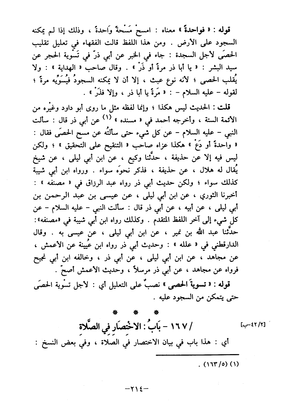 [2/42 - ب] / 167-بَابُ: الاخْتِصَارِ فِي الصَّلاةِ