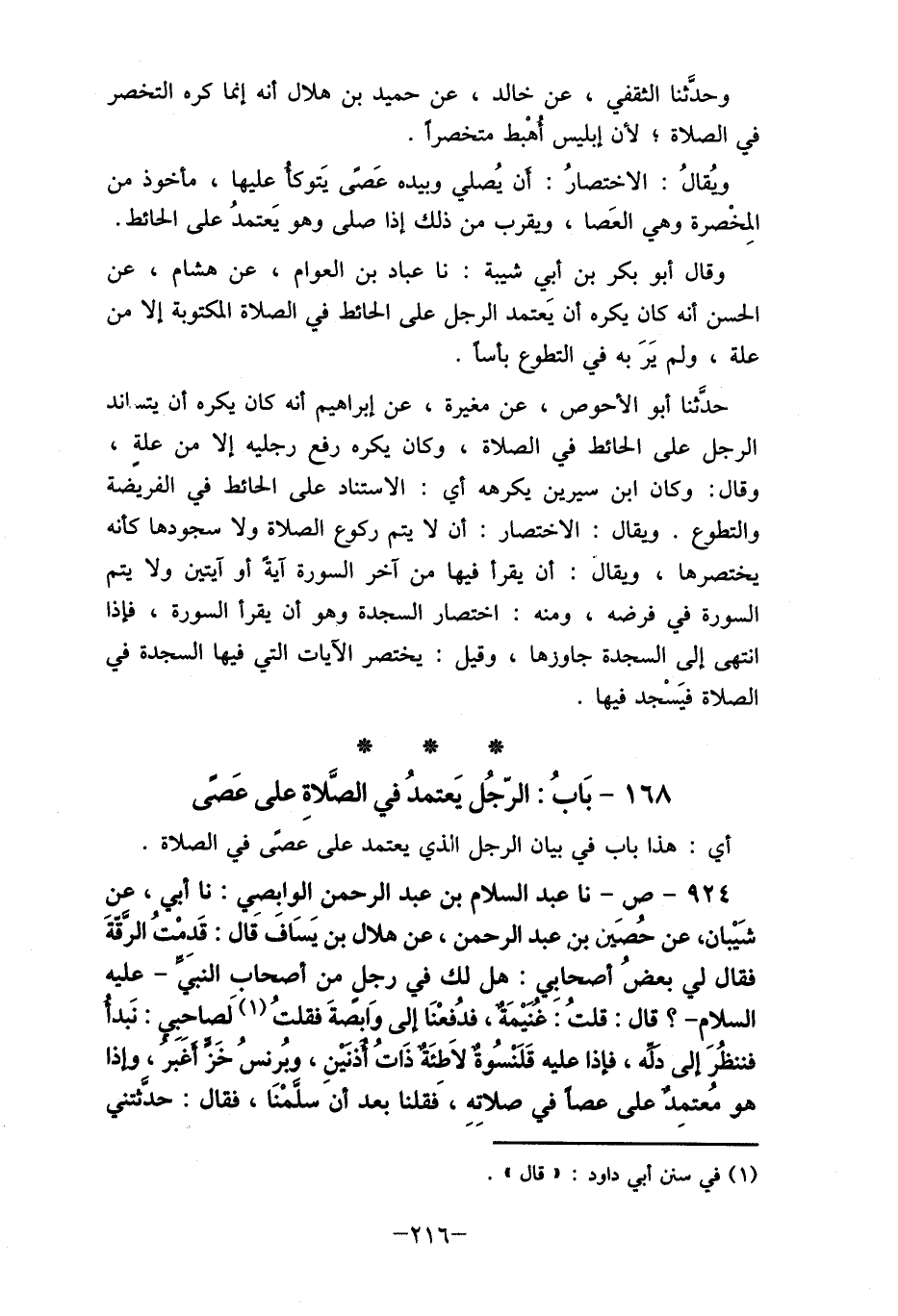168- بَابُ: الرّجُل يَعتمدُ في الصَّلاةِ على عَصى