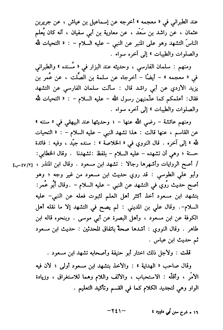 قلت: ولأجل ذلك اختار أبو حنيفة وأصحابه تشهد ابن مسعود.