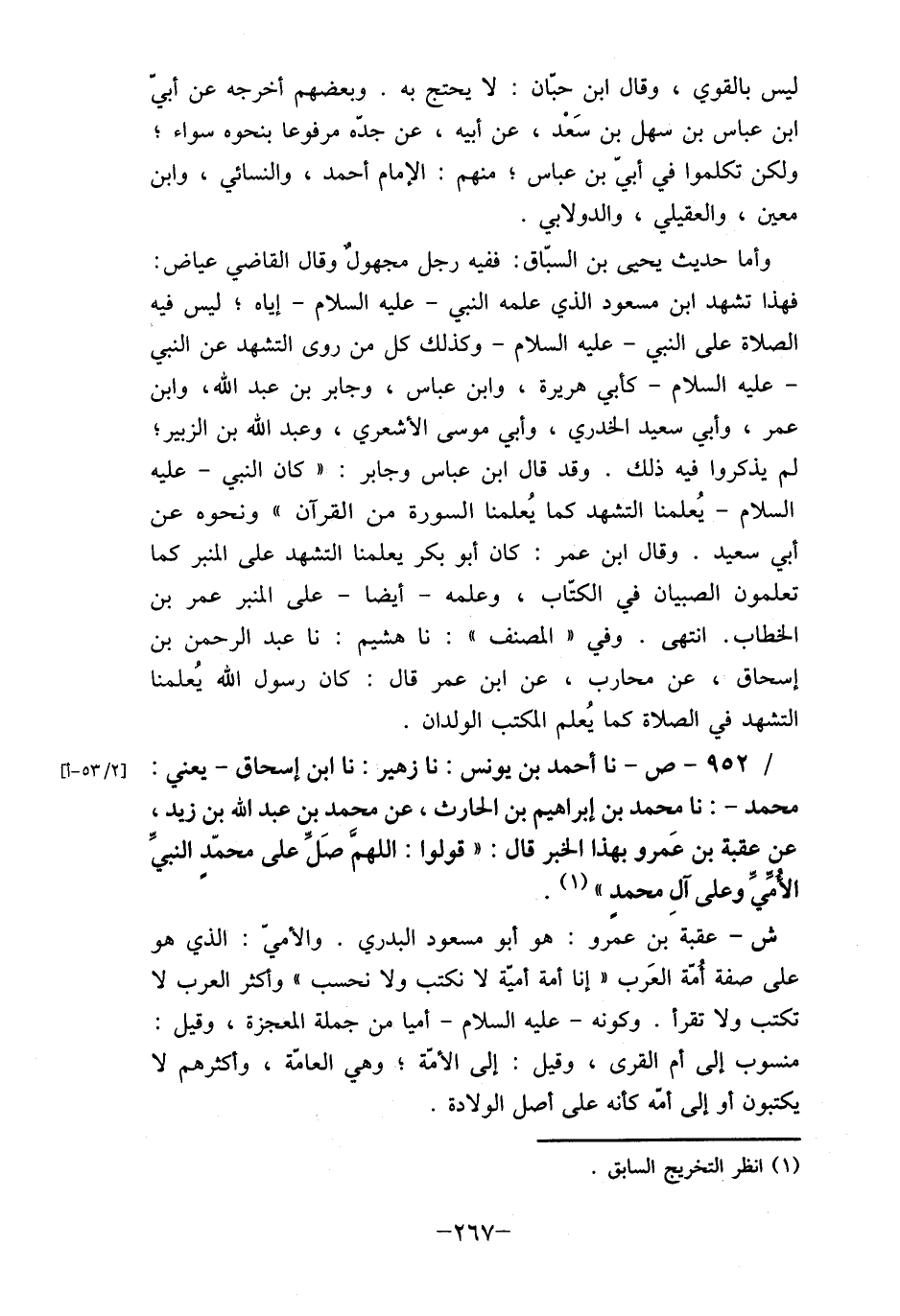/ 952- ص- نا أحمد بن يونس: نا زهير: نا ابن إسحاق- يعني: محمد-: نا محمد بن إبراهيم بن الحارث، عن محمد بن عبد الله بن زيد، عن عقبة بن عَمرو بهذا الخبر قال: "قولوا: اللهم صَلِّ على محمّد النبيِّ الأمِّيِّ وعلى آلِ محمدٍ " (1) .