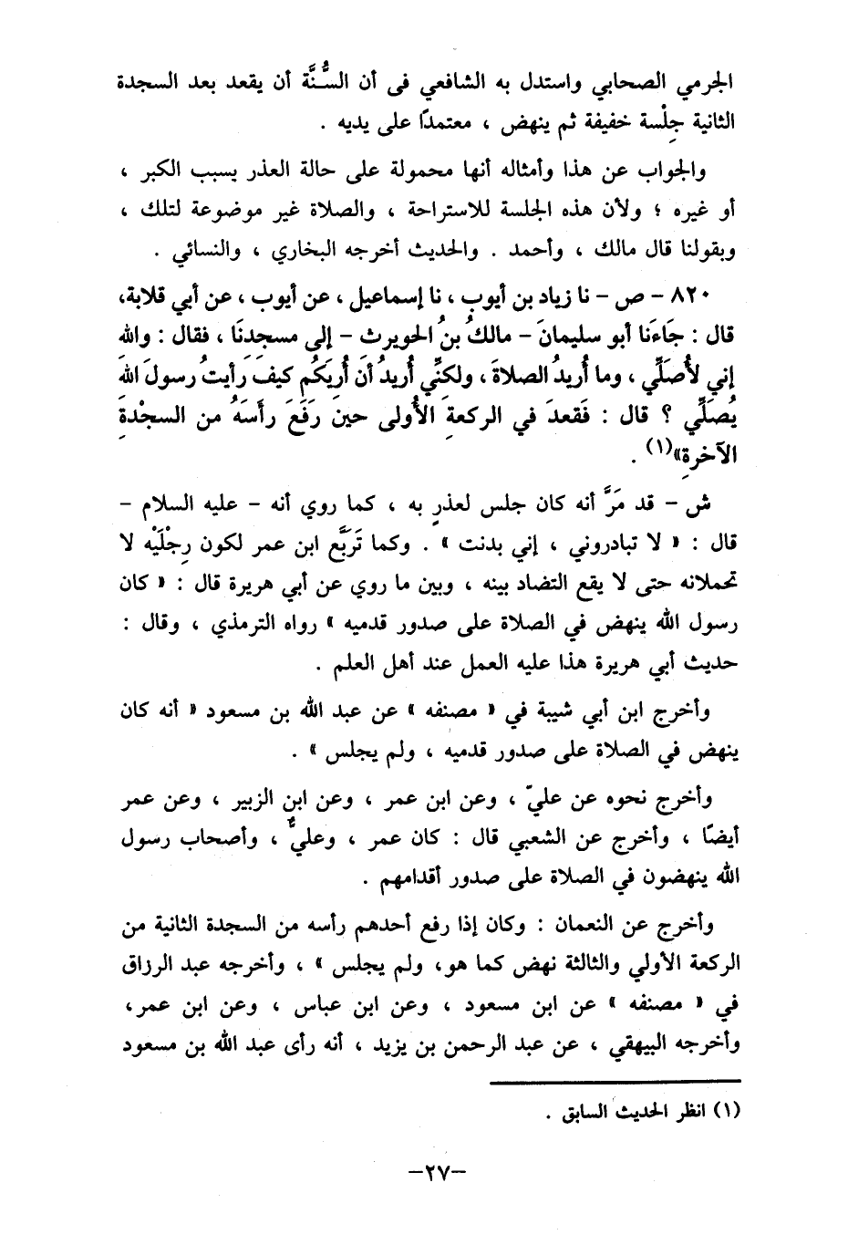 وأخرج ابن أبي شيبة في (مصنفه عن عبد الله بن مسعود بأنه كان ينهض في الصلاة على صدور قدميه، ولم يجلس ".