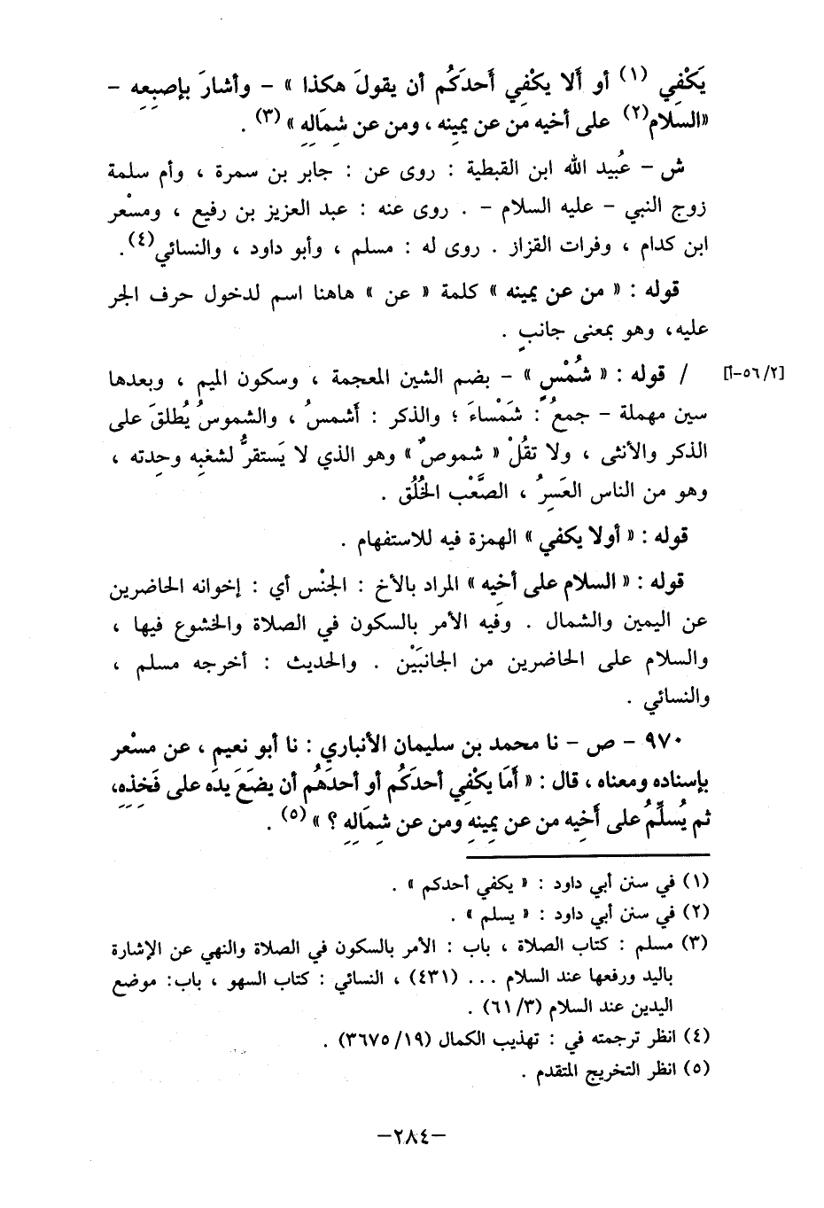 "السَلام (2) على أخيه من عن يميِنه، ومن عن شِمَالِهِ " (3) .