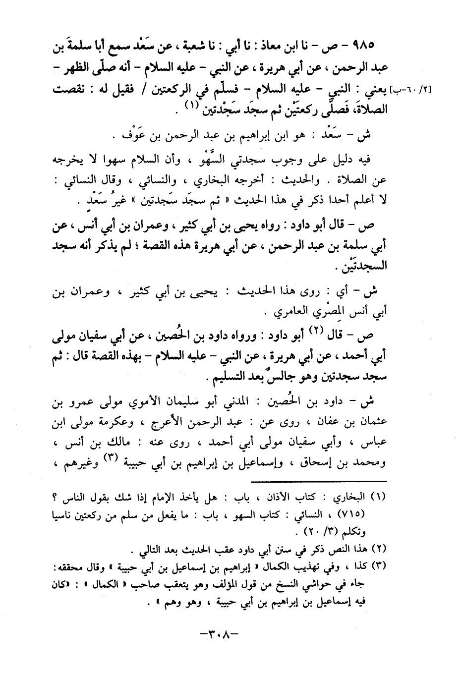 ص- قال (2) أبو داود: ورواه داود بن الحُسين، عن أبي سفيان مولى أبي أحمد، عن أبي هريرة، عن النبي- عليه السلام- بهذه القصة قال: ثم سجد سجدتين وهو جالس بعد التسليم.