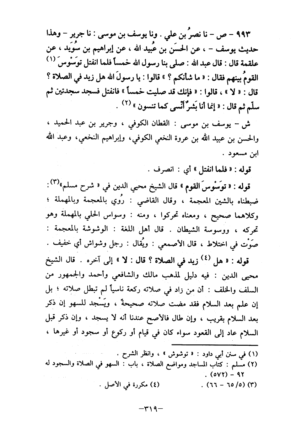 (2) مسلم: كتاب المساجد ومواضع الصلاة، باب: السهو في الصلاة والسجود له 92- (572) .
