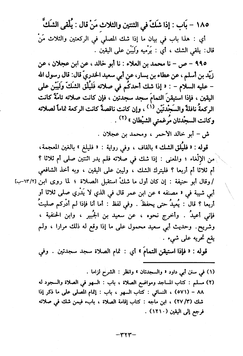 (2) مسلم: كتاب المساجد ومواضع الصلاة، باب: السهو في الصلاة والسجود له هو- (571) ، النسائي: كتاب السهو، باب: إتمام المصلى على ما ذكر إذا شك (27/3) ، ابن ماجه: كتاب أقامة الصلاة، بابكم فيمن شك في صلاته فرجع إلى اليقين (1210) .
