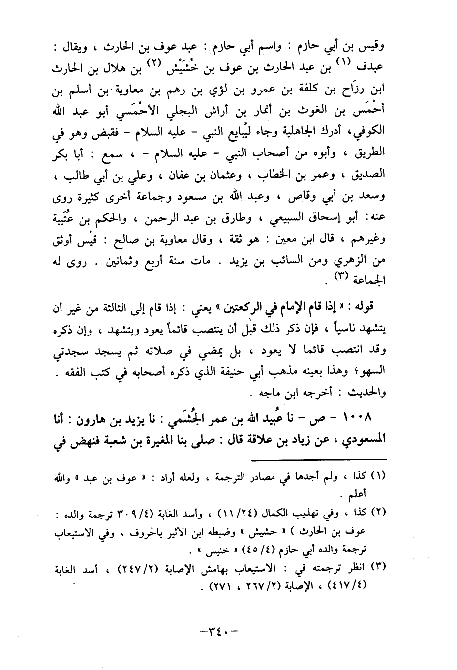 1008- ص- نا عُبيد الله بن عمر الجُشَمي: نا يزيد بن هارون: أنا المسعودي، عن زياد بن علاقة قال: صلى بنا المغيرة بن شعبة فنهض في