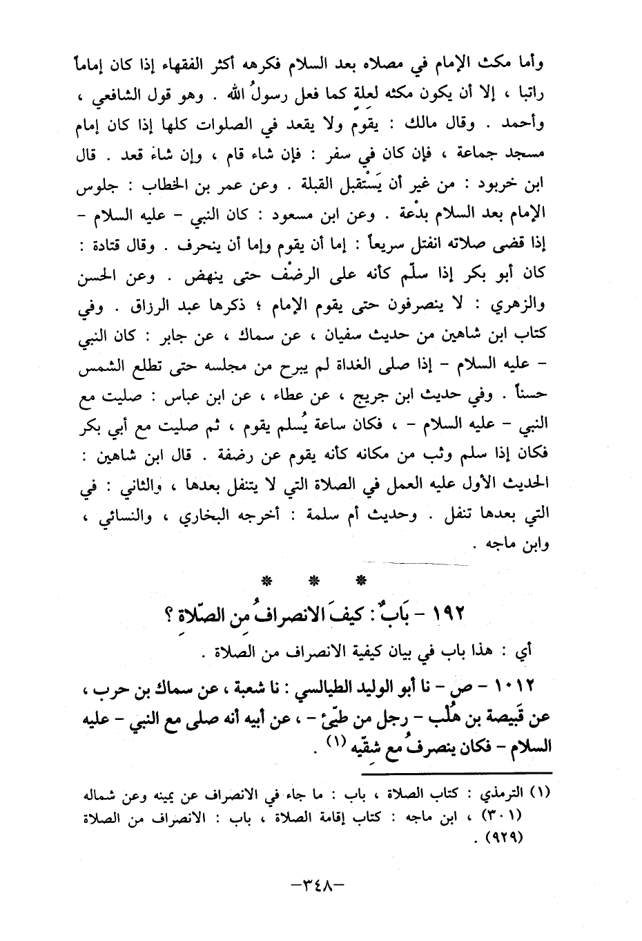 192- بَابٌ: كيفَ الانصرافُ مِن الصلاة؟