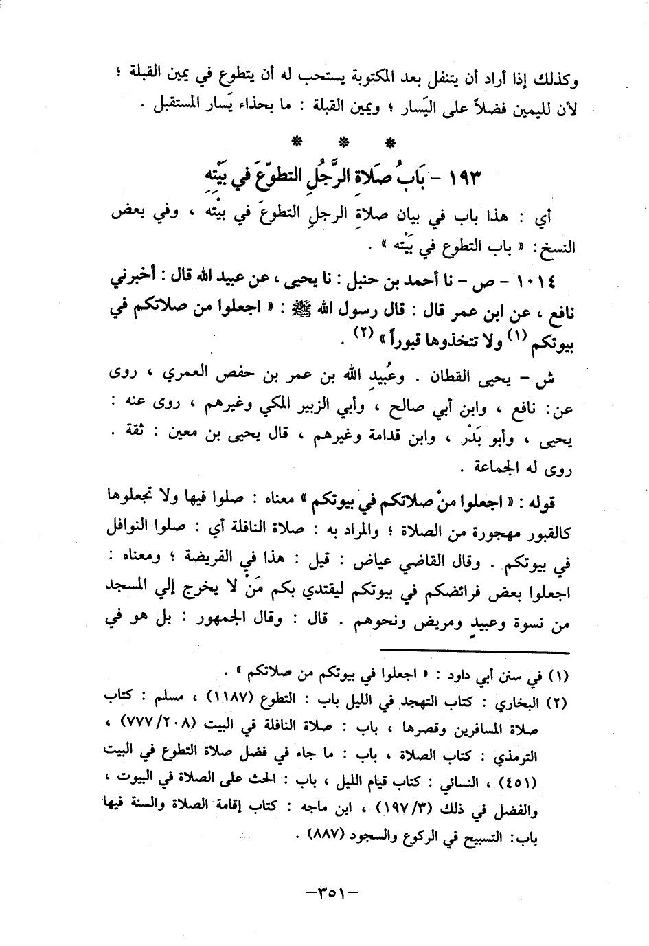 193- بَابُ صَلاة الرجل التطوّعَ في بيتِهِ