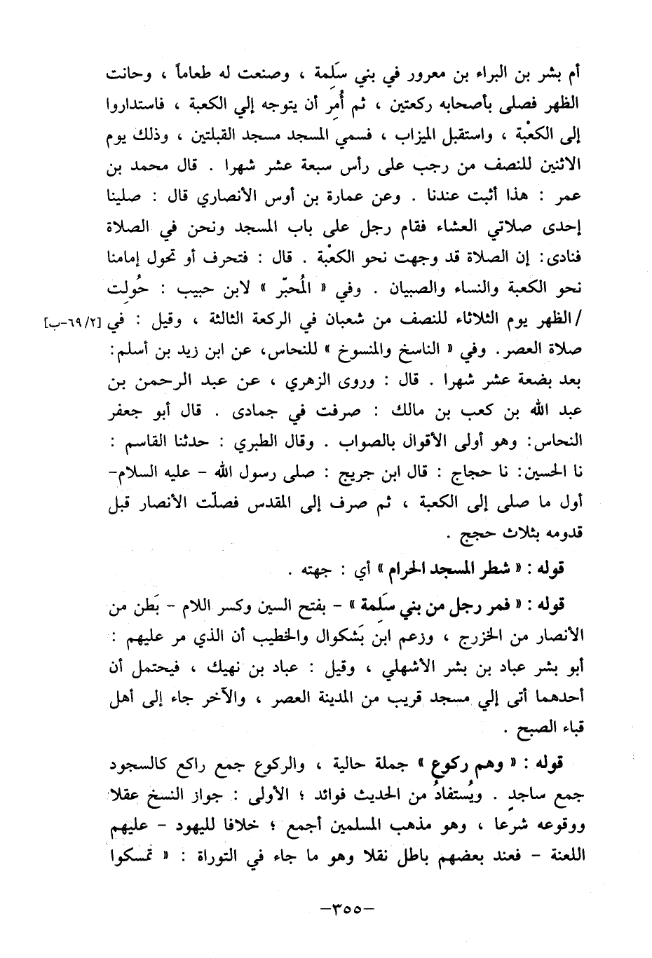 فنادى: إن الصلاة قد وجهت نحو الكعْبة. قال: فتحرف أو تحول إمامنا