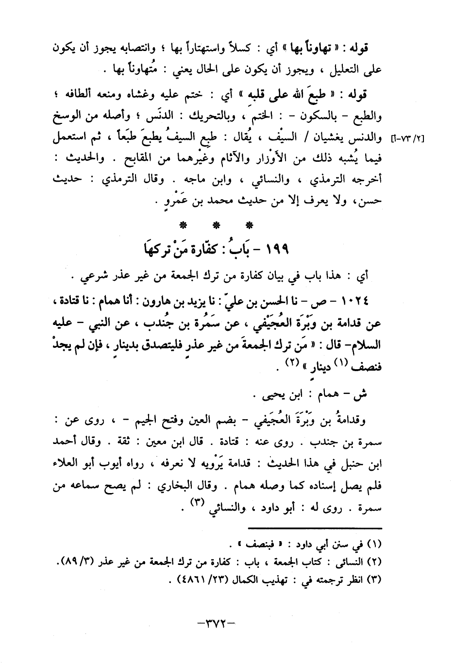 (2) النسائي: كتاب الجمعة، باب: كفارة من ترك الجمعة من غير عذر (3/ 89) .