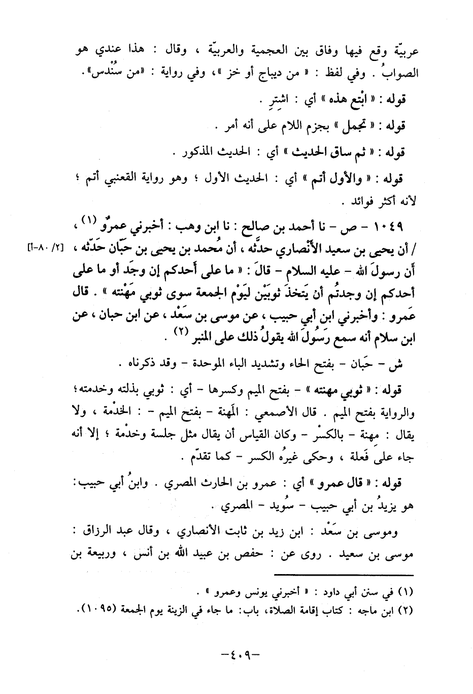 [2/80 - أ] / أن يحيي بن سعيد الأنصاري حدثه، أن مُحمد بن يحيي بن حبان حدثه، أن رسولَ الله- عليه السلامِ- قالَ: " ما على أحدكم إن وجَد أو ما على أحدكم إن وجدتُم أن يَتخذ ثوبَيْن ليَوْم الجمعة سوى ثوبي مَهْنته ". قال عَمرو: وأخبرني ابنِ أبي حبيب، عن موسى بن سَعْد، عن ابن حبان، عن ابن سلام أنه سمع رسُولَ الله يقولُ ذلك على المنبر (2) .