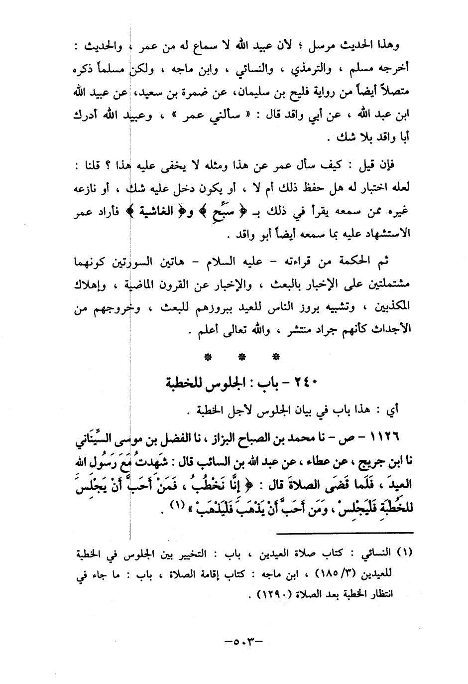 (1) النسائي: كتاب صلاة العيدين، باب: التخيير بين الجلوس في الخطبة للعيدين (185/3) ، ابن ماجه: كتاب إقامة الصلاة، باب: ما جاء في انتظار الخطبة بحد الصلاة (1290) .