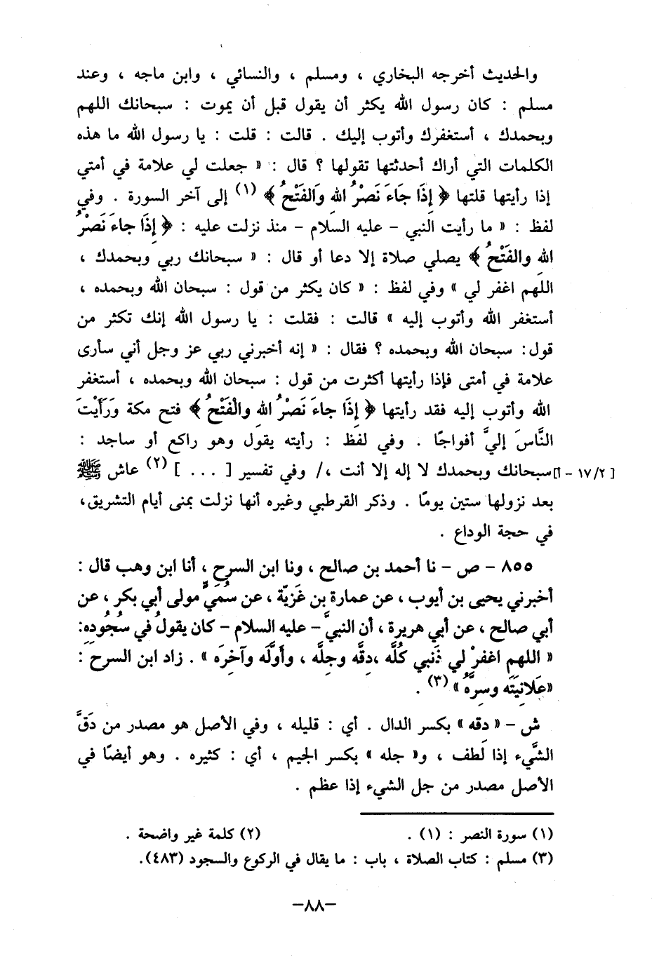 النَاسَ إلي أفواجَا. وفي لفظ: رأيته يقول وهو راكع أو ساجد: