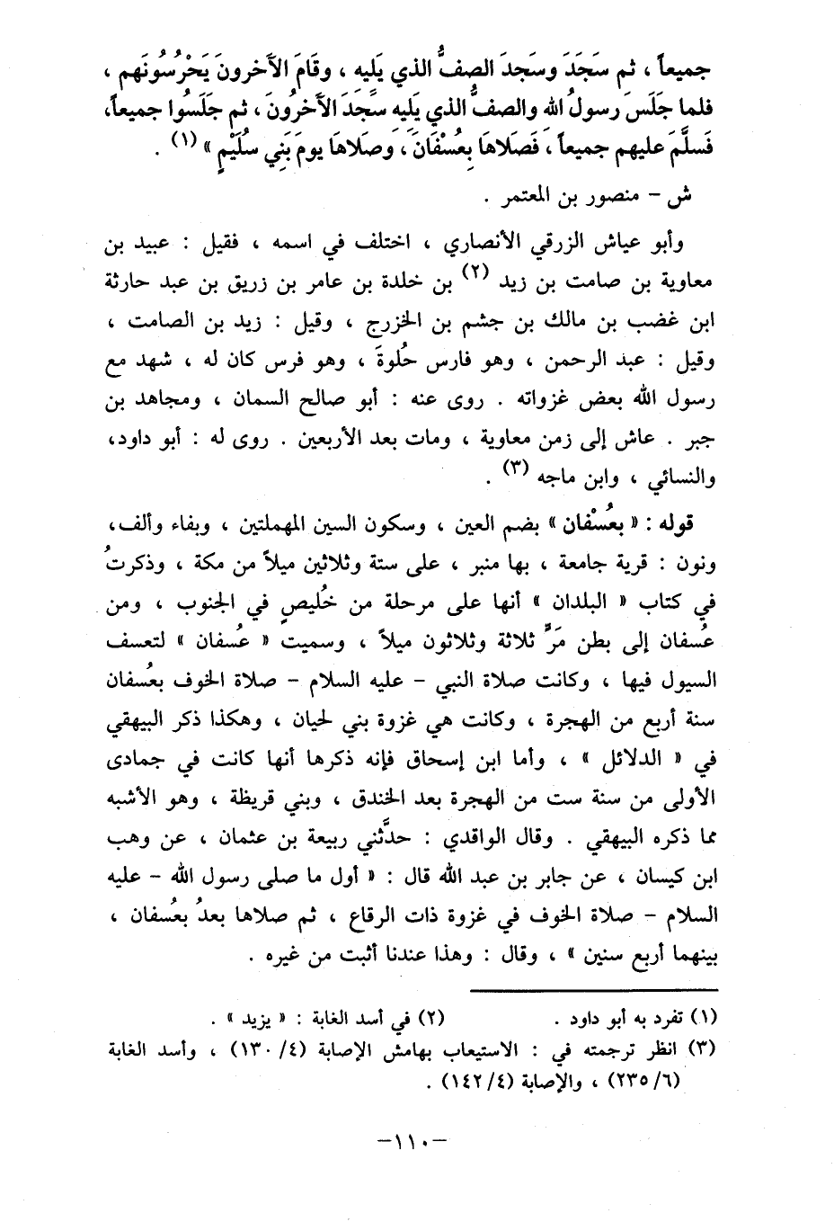 جميعا، ثم سَجَدَ وسَجدَ الصف الذي يَليه، وقَامَ الآَخرونَ يَحْرُسُونَهم، فلما جَلَسَ رسولُ الله والصف الذي يَليه سًجَدَ الآخرُوِنَ، ثم جَلَسُوا جميعا، فَسلمَ عليهم جميعاً، فَصَلاهَا بِعُسْفَان، وَصَلاهَا يوم بنِي سُلَيْمٍ " (1) .