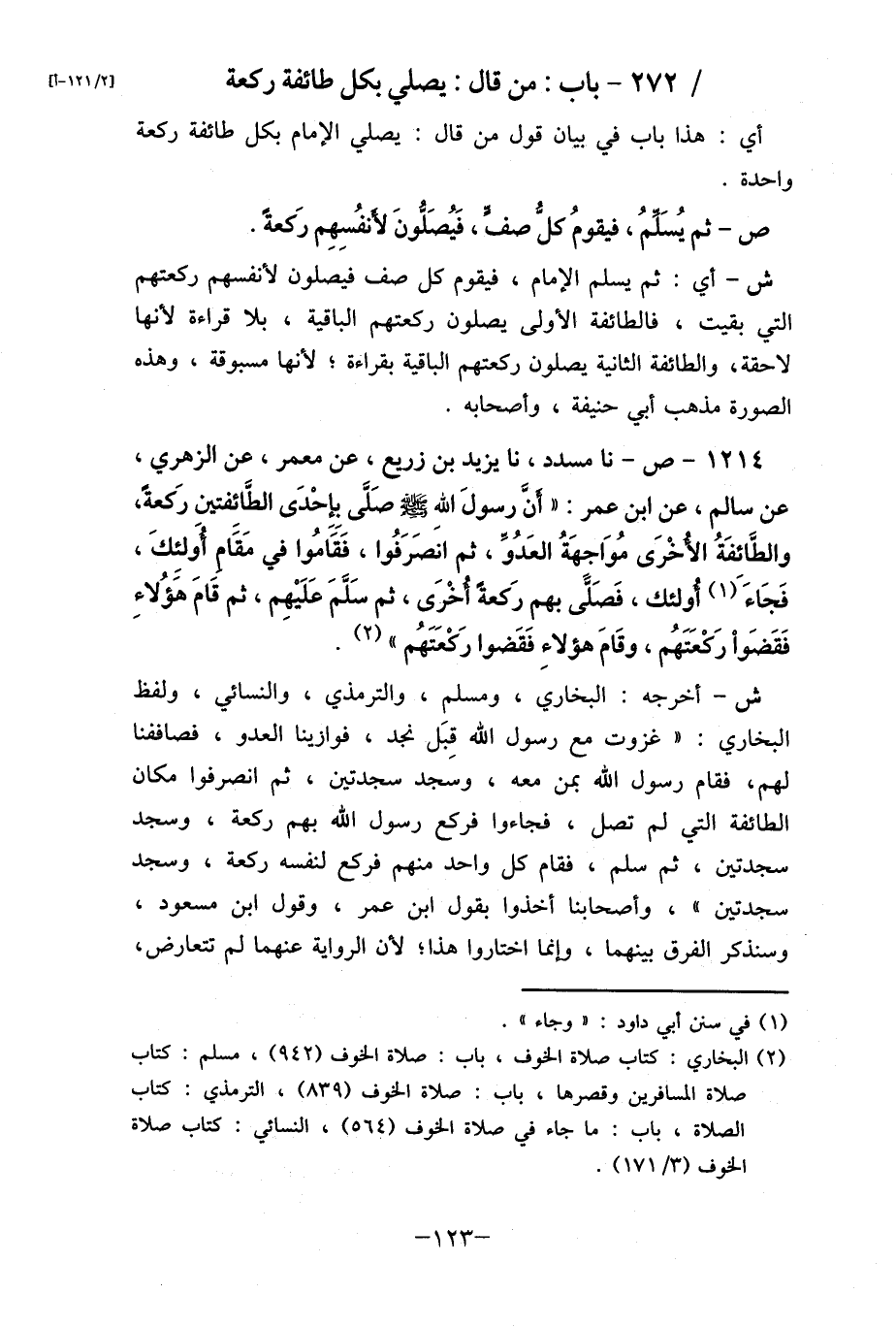 / 272- باب: من قال: يصلي بكل طائفة ركعة [2/ 121 - أ]