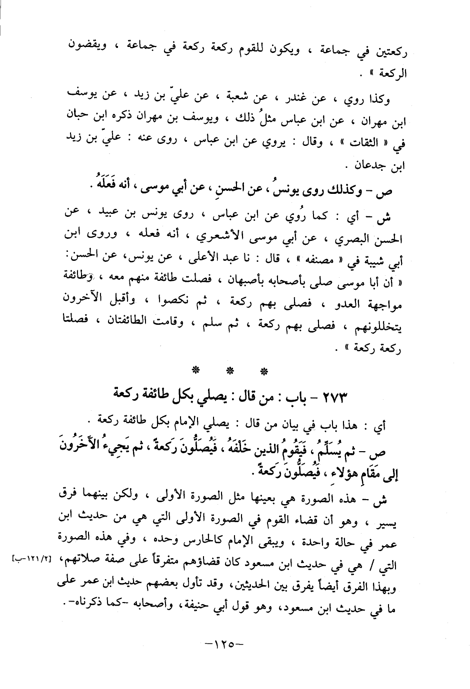 273- باب: من قال: يصلي بكل طائفة ركعة