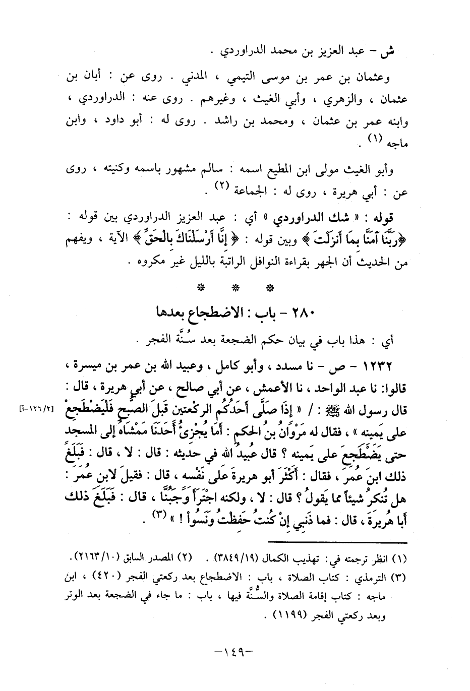 (3) الترمذي: كتاب الصلاة، باب: الاضطجاِع بعد ركعتي الفجر (420) ، ابن ماجه: كتاب إقامة الصلاة والسنَة فيها، باب: ما جاء في الرجعة بعد الوتر وبعد ركعتي الفجر (1199) .