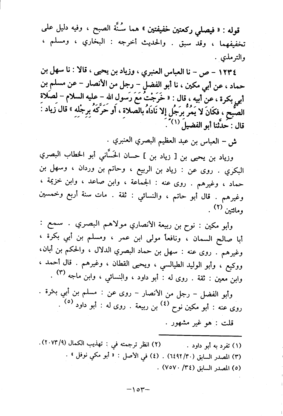 1234- ص- نا العباس العنبري، وزياد بن يحيى، قالا: نا سهل بن حماد، عن أبي مكين، نا أبو الفضل- رجل من الأنصار- عن مسلم بن أبي بكرة، عنِ أبيه، قال: " خَرَجْتُ مَعَ رَسول اللهِ- عليه السلام- لِصَلاةِ الصبح، فكَان لا يَمُر برَجُل إلا نَاداهُ بالصلاة، أَو حَركًهُ برجْله " قال زياد: قال: حدثنا أبو الفضيلَ (1)