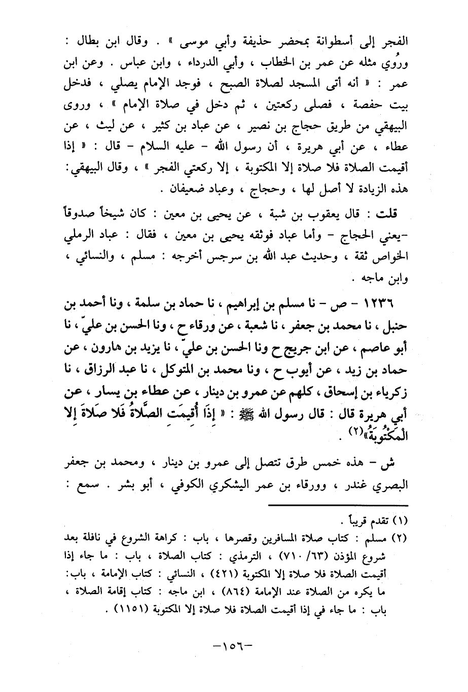(2) مسلم: كتاب صلاة المسافرين وقصرها، باب: كراهة الشروع في نافلة بعد شروع المؤذن (63/ 710) ، الترمذي: كتاب الصلاة، باب: ما جاء إذا أقيمت الصلاة فلا صلاة إلا المكتوبة (421) ، النسائي: كتاب الإمامة، باب: