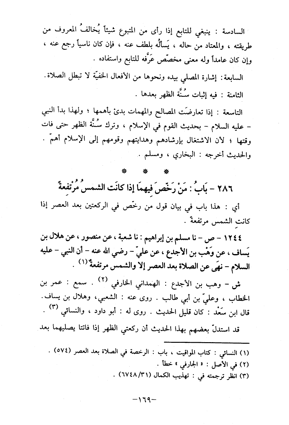 1244- ص- نا مسلم بن إبراهيم: نا شعبة، عن منصور، عن هلال بن يَساف، عند وَهْب بن الأجدع، عن علي - رضي الله عنه - أن النبي- عليه السلام- نهى عن الصلاة بعد العصر إلا والشمس مرتفعة (1) .