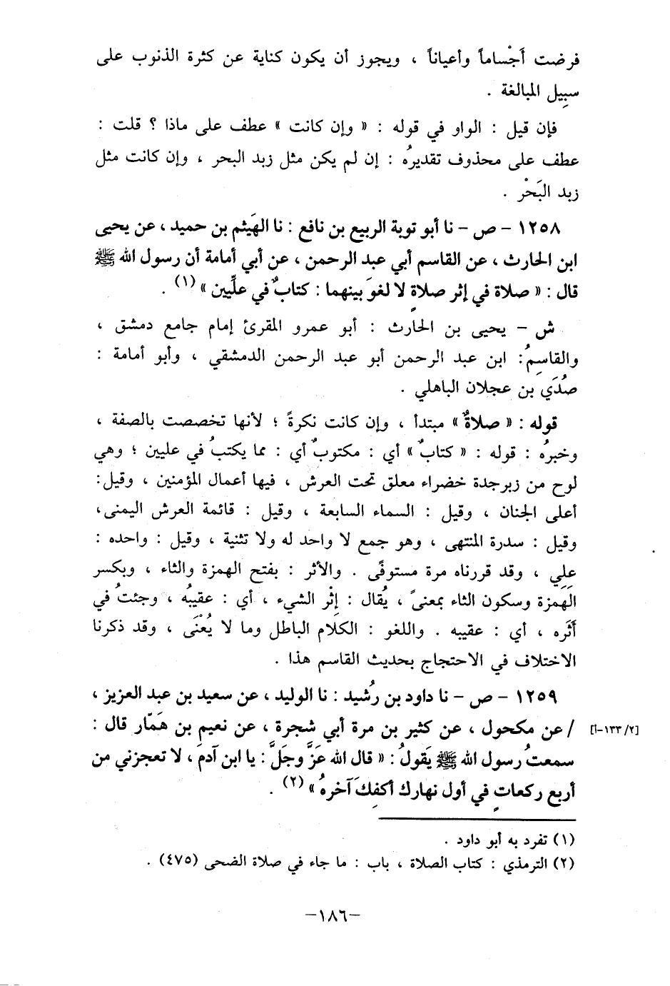 1258- ص- نا أبو توبة الربيع بن نافع: نا الهَيثم بن حميد، عن يحيى ابن الحارث، عن القاسم أبي عبد الرحمن، عن أبي أمامة أن رسول اللْه صلى الله عليه وسلم قال: " صلاة في إثر صلاة لا لغوَ بينهما: كتابٌ في عليين" (1) .