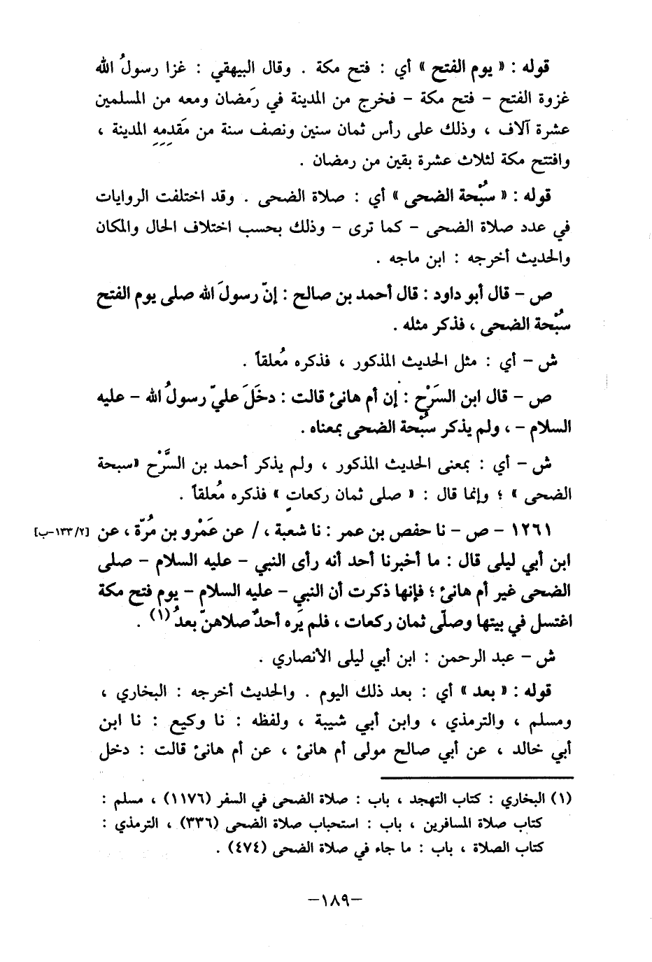 1261- ص- نا حفص بن عمر: نا شعبة، / عن عَمْرو بن مُرّة، عن [2/133-ب] ابن أبي ليلى قال: ما أخبرنا أحد أنه رأى النبي- عليه السلام- صلى الضحى غير أم هانئ , فإنها ذكرت أن النبيِ- عليه السلام- يوم فتح مكة