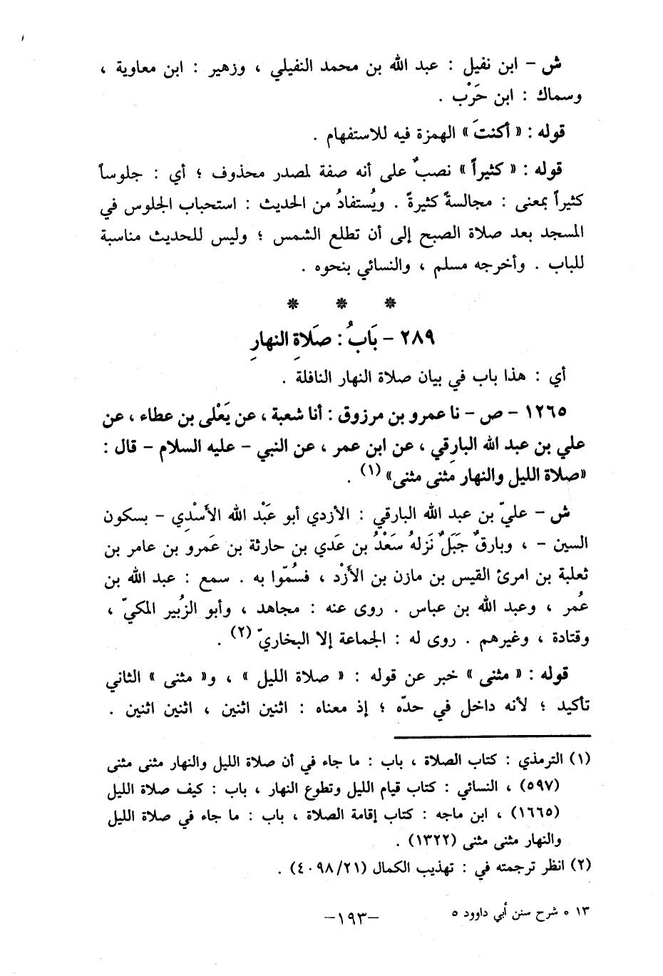 (1) الترمذي: كتاب الصلاة، باب: ما جاء في أن صلاة الليل والنهار مثنى مثنى (597) ، النسائي: كتاب قيام الليل وتطوع النهار، باب: كيف صلاة الليل (1665) ، ابن ماجه: كتاب إقامة الصلاة، باب: ما جاء في صلاة الليل والنهار مثنى مثنى (1322) .
