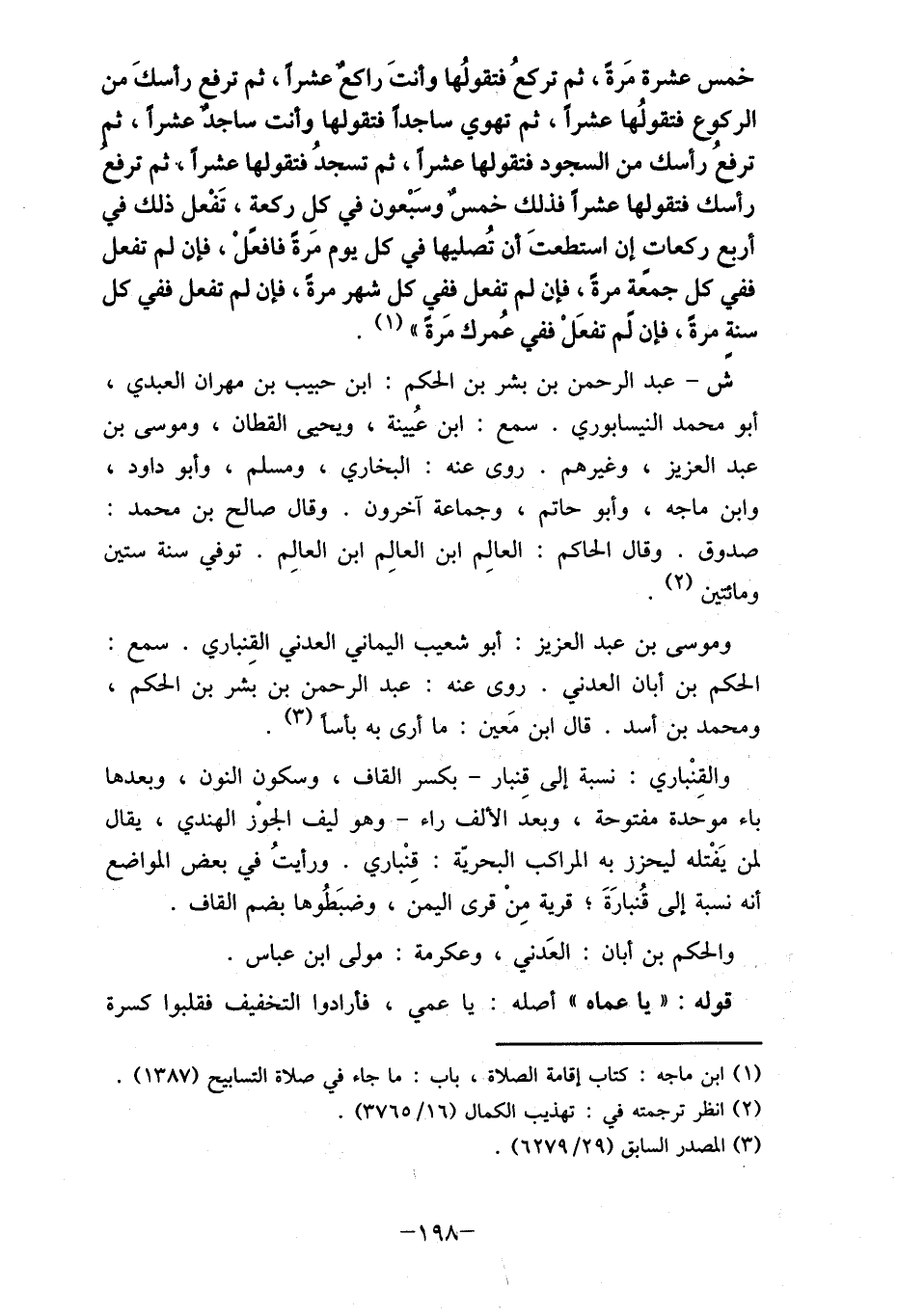 (1) ابن ماجه: كتاب إقامة الصلاة، باب: ما جاء في صلاة التسابيح (1387) . (2) انظر ترجمته في: تهذيب الكمال (16/ 3765) .