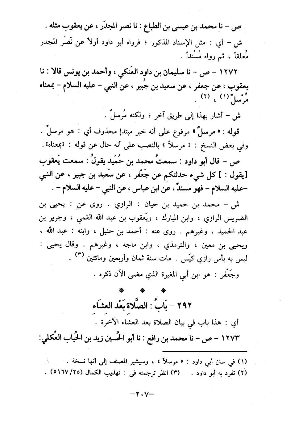 1272- ص- نا سليمان بن داود العَتكي، وأحمد بن يونس قالا: نا يعقوب، عن جعفر، عن سعيد بن جبير، عن النبي- عليه السلام- بمعناه مُرْسلٌ (1) ، (2) .