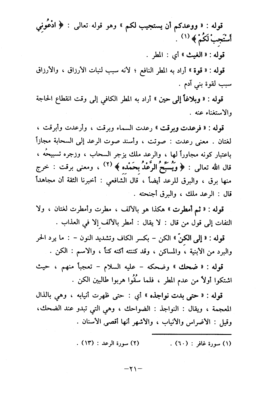 قوله: " فرددت وبرقت " رعدت السماء وبرقت، وأرعدت وأبرقت، لغتان. معنى رعدت: صوتت، وأسند صوت الرعد إلى السحابة مجازاً باعتبار كونه مجاوراً لها، والرعد ملك يزجر السحاب، وزجره تسبيحُه، قال الله تعالى: {وَيُسبحُ الرعْدُ بحَمْده} (2) ، ومعنى برقت: خرج منها برق، والبرق للرعد أيضاً، قال اَلشَافعي: أخبرنا الثقة أن مجاهداً قال , الرعد ملك، والبرق أجنحته.