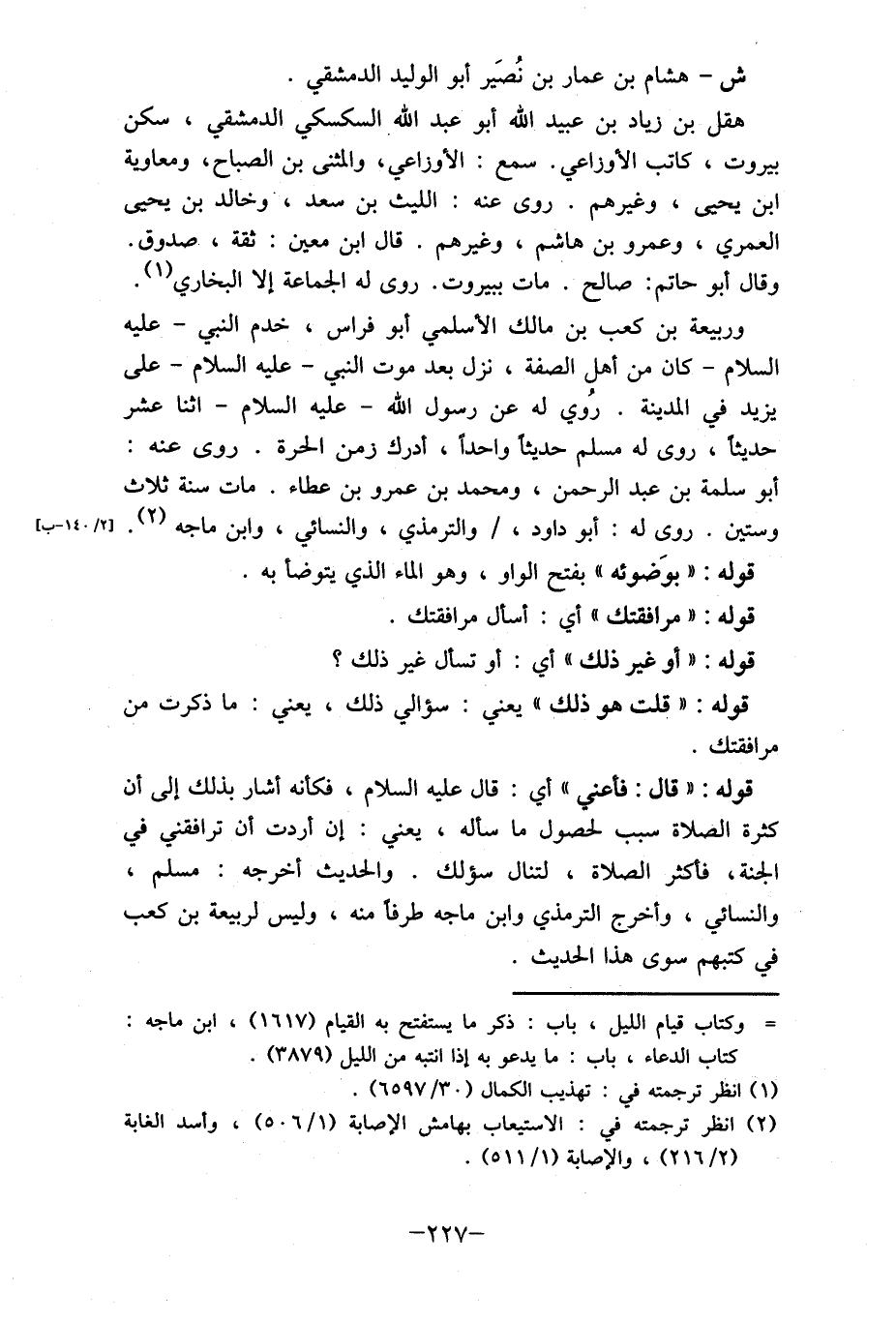 الجنة، فكثر الصلاة، لتنال سؤلك. والحديث أخرجه: مسلم، والنسائي، وأخرج الترمذي وابن ماجه طرفا منه، وليس لربيعة بن كعب