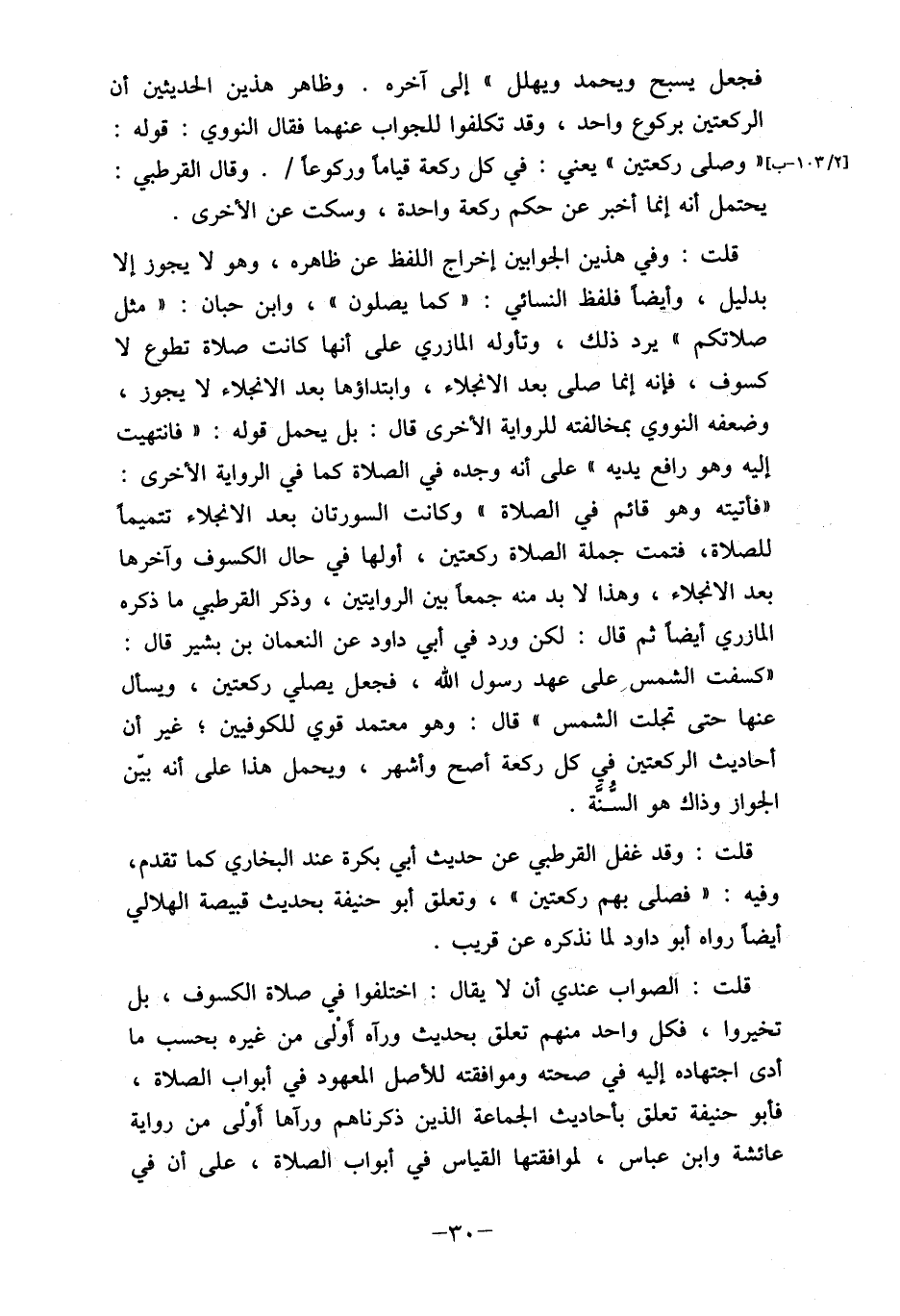 قلت: الصواب عندي أن لا يقال: اختلفوا في صلاة الكسوف، بل تخيروا، فكل واحد منهم تعلق بحديث ورآه أوْلى من غيره بحسب ما أدى اجتهاده إليه في صحته وموافقته للأصل المعهود في البواب الصلاة، فأبو حنيفة تعلق بأحاديث الجماعة الذين ذكرناهم ورآها أوْلى من رواية عائشة وابن عباس، لموافقتها القياس في أبواب الصلاة، على أن في