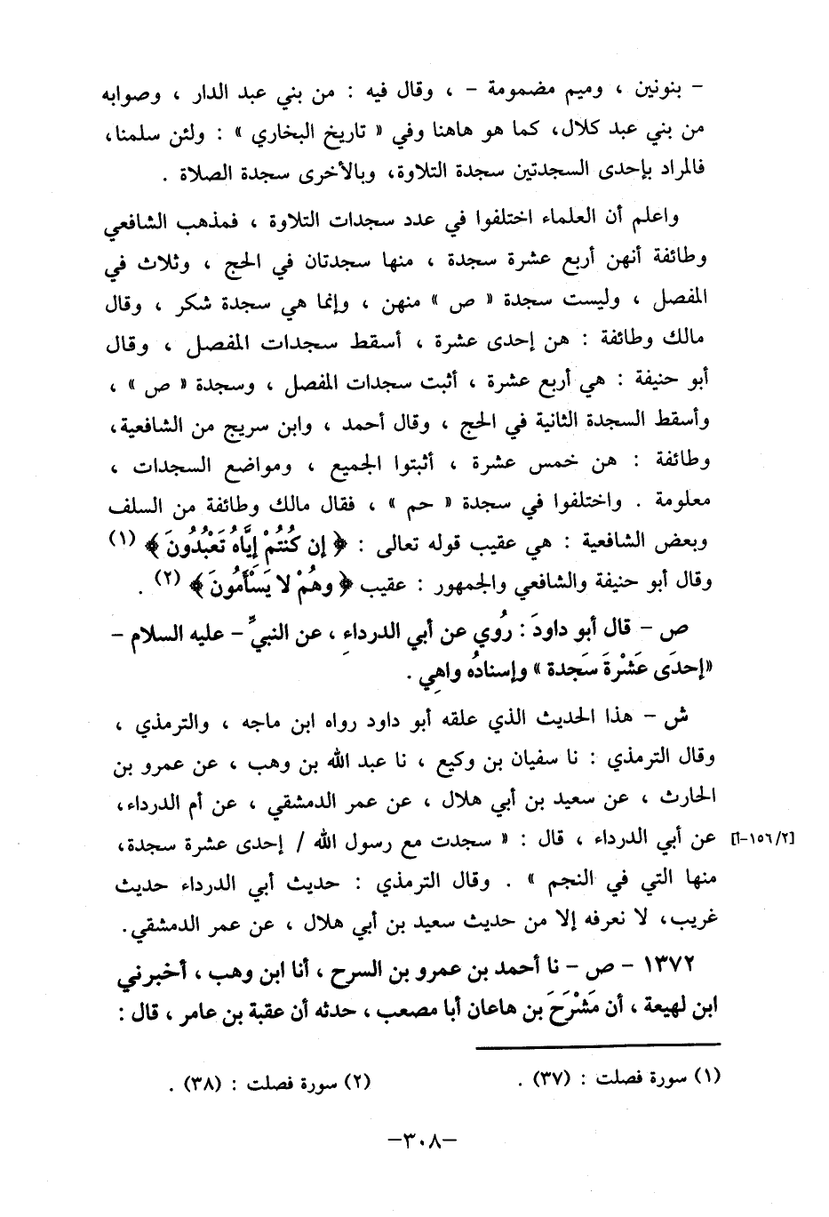 معلومة. واختلفوا في سجدة " حم "، فقال مالك وطائفة من السلف