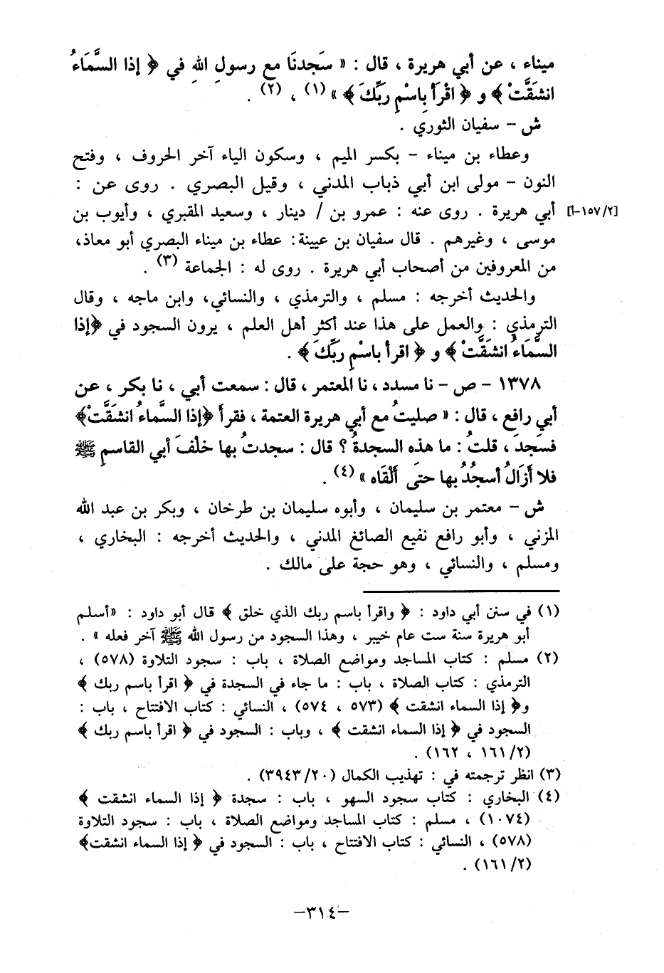 (2) مسلم: كتاب المساجد ومواضع الصلاة، باب: سجود التلاوة (578) ، الترمذي: كتاب الصلاة، باب: ما جاء في السجدة في {اقرأ باسم ربك} و {إذا السماء انشقت} (573، 574) ، النسائي: كتاب الافتتاح، باب: السجود في {إذا السماء انشقت} ، وباب: السجود في {اقرأ باسم ربك} (3) انظر ترجمته في: تهذيب الكمال (0 2/ 3943) .