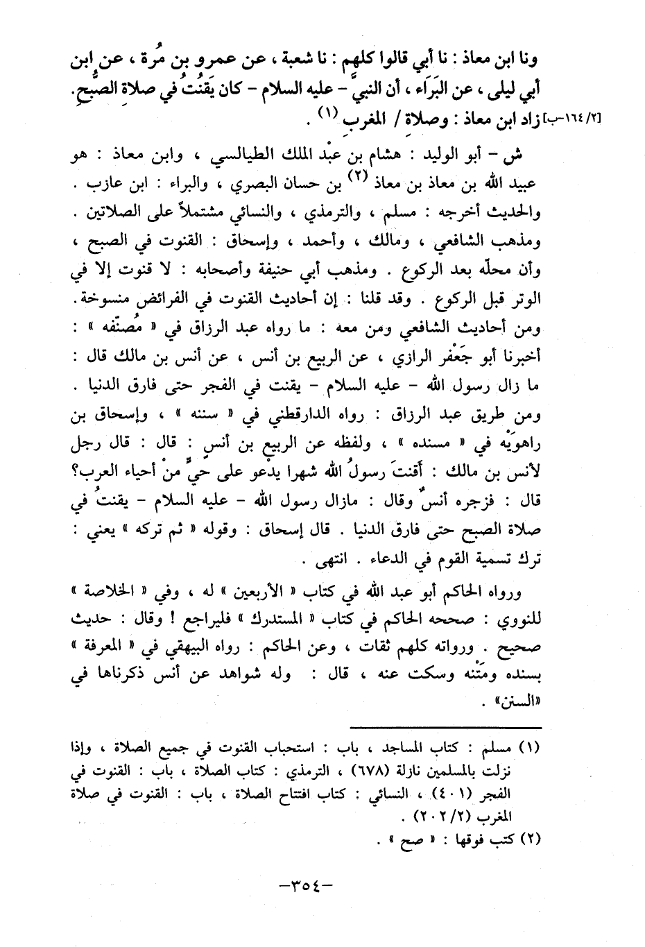 ونا ابن معاذ: نا أبي قالوا كلهم: نا شعبة، عن عمرِو بن مُرة، عن ابن أبي ليلى، عن البَرَاء، أن النبي- عليه السلام- كان يقنُتُ في صلاةِ الصبحِ. [2/ 164 - ب] زاد ابن معاذ: وصلاة/ المغربِ (1) .