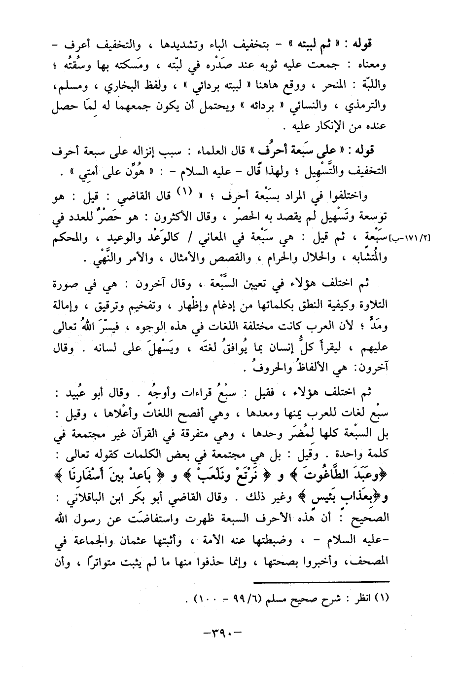 واختلفوا في المراد بسَبْعة أحرف , " (1) قال القاضي: قيل: هو