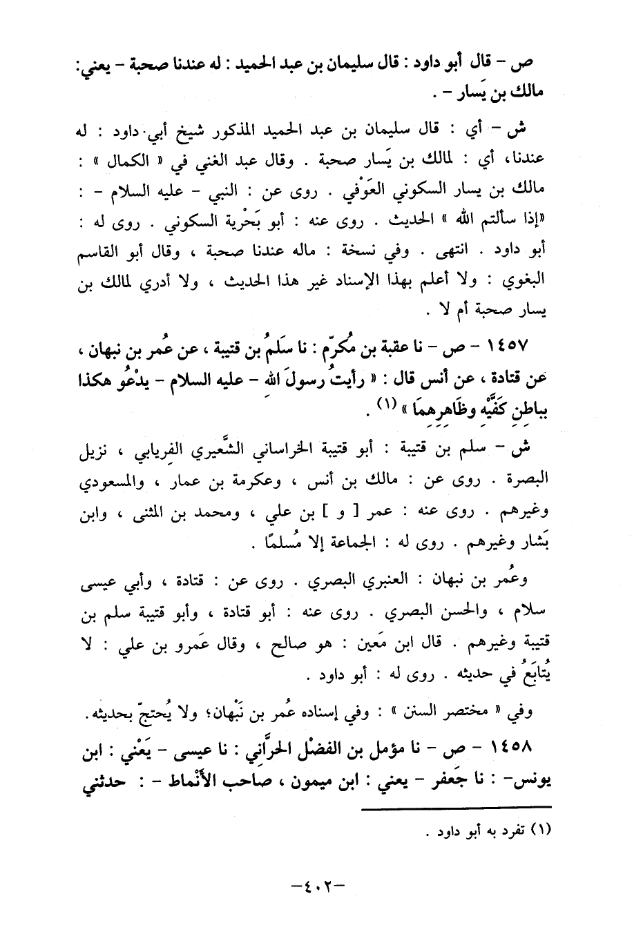 ص- قال أبو داود: قال سليمان بن عبد الحميد: له عندنا صحبة- يعني: مالك بن يسار-.