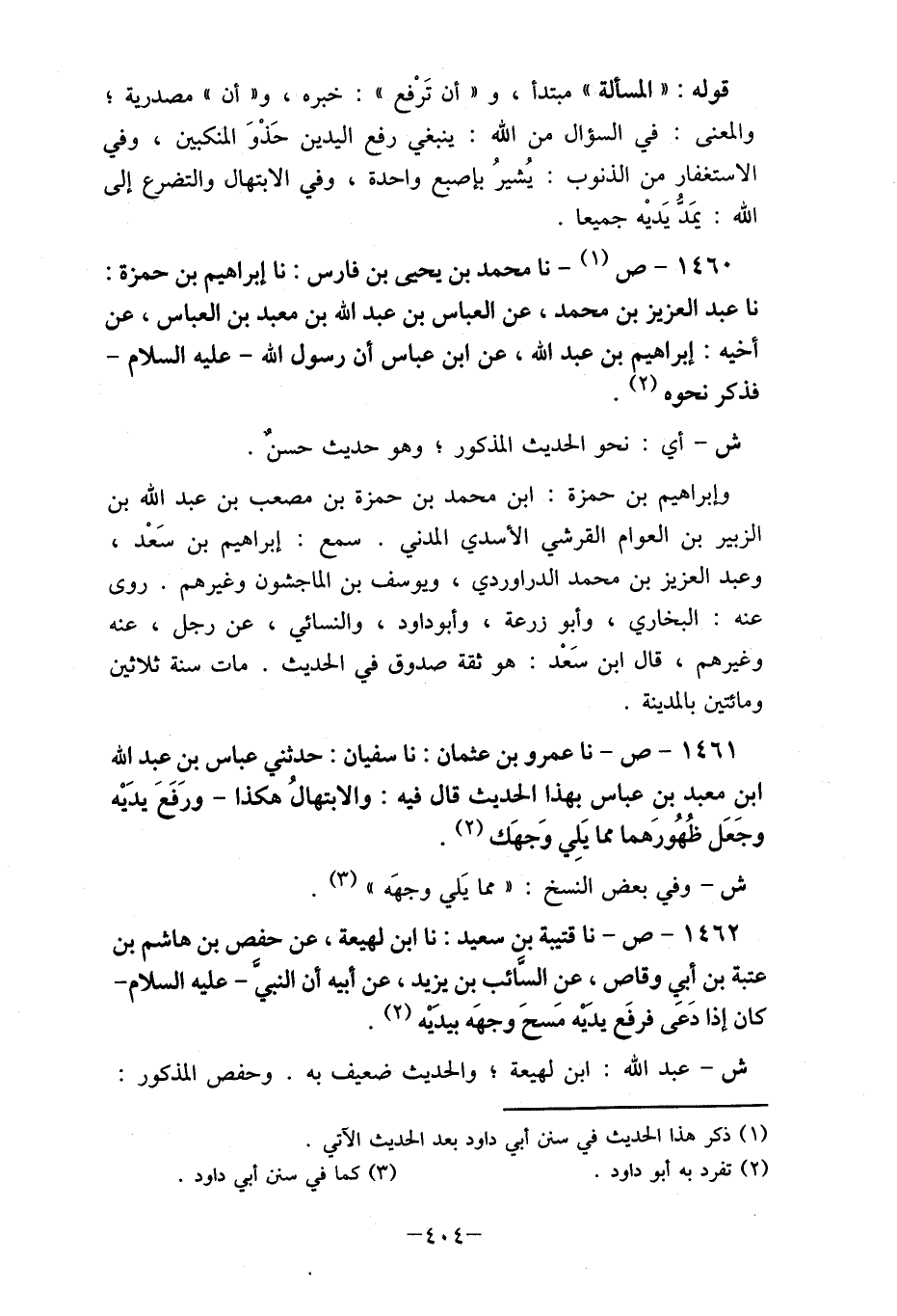 1462- ص- نا قتيبة بن سعيد: نا ابن لهيعة، عن حرص بن هاشم بن عتبة بن أبي وقاص، عنِ السائب بن يزيد، عن أبيه أن النبيّ- عليه السلام- كان إذا دعى فرفع يديْه مسح وجهه بيديْه (2) .