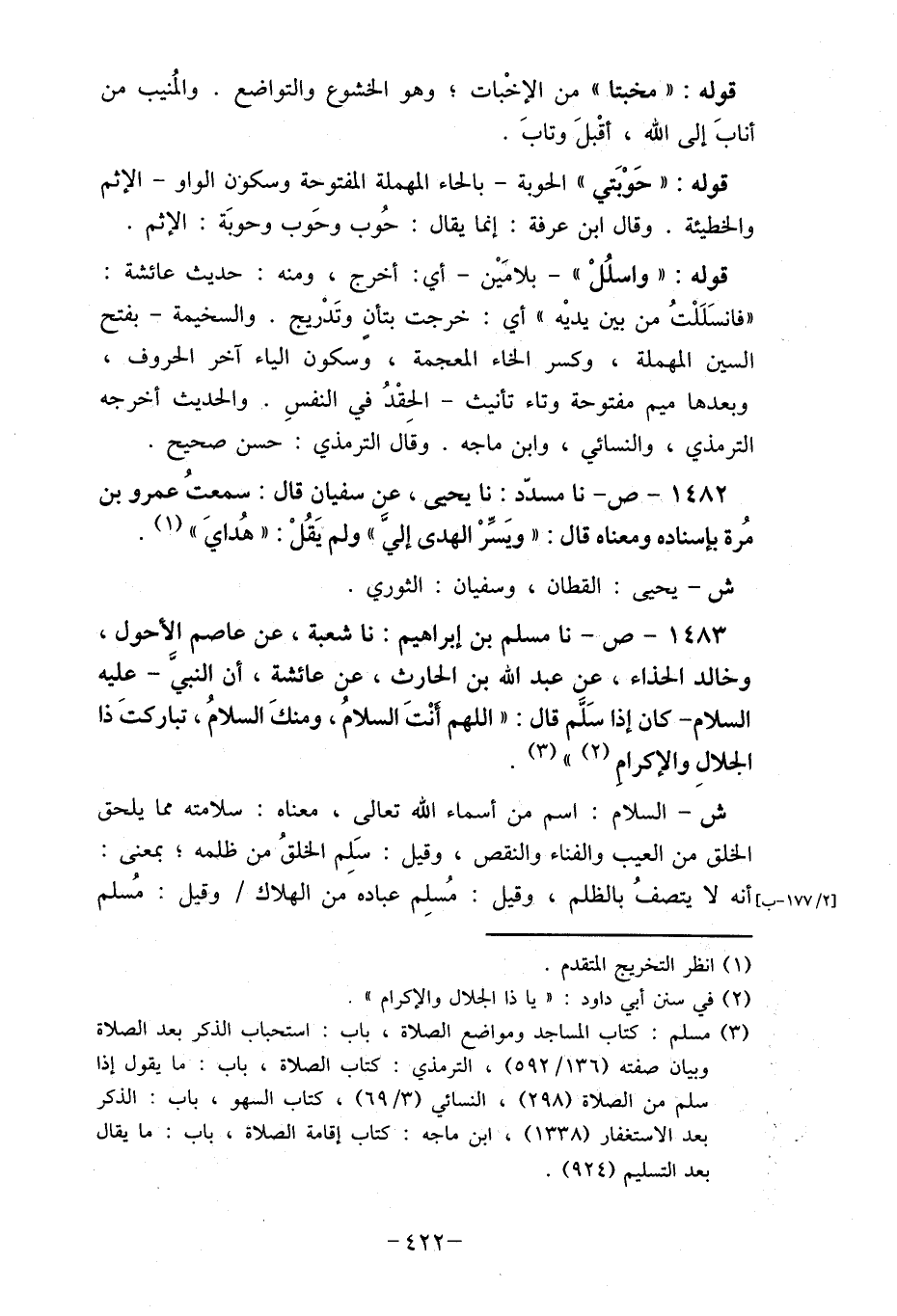 (3) مسلم: كتاب المساجد ومواضع الصلاة، باب: استحباب الذكر بعد الصلاة وبيان صفته (136/ 592) ، الترمذي: كتاب الصلاة، باب: ما يقول إذا سلم من الصلاة (298) ، النسائي (3/69) ، كتاب السهو، باب: الذكر بعد الاستغفار (1338) ، ابن ماجه: كتاب إقامة الصلاة، باب: ما يقال بعد التسليم (924) .
